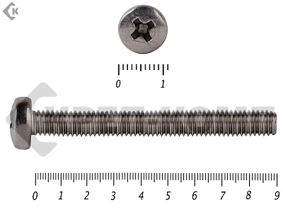 Винт с полукруглой головкой - это стальной стержень с полной метрической резьбой. Существует два варианта исполнения - с прямым шлицем и с крестообразным. Полукруглая головка обеспечивает лёгкий захват простой отверткой.
